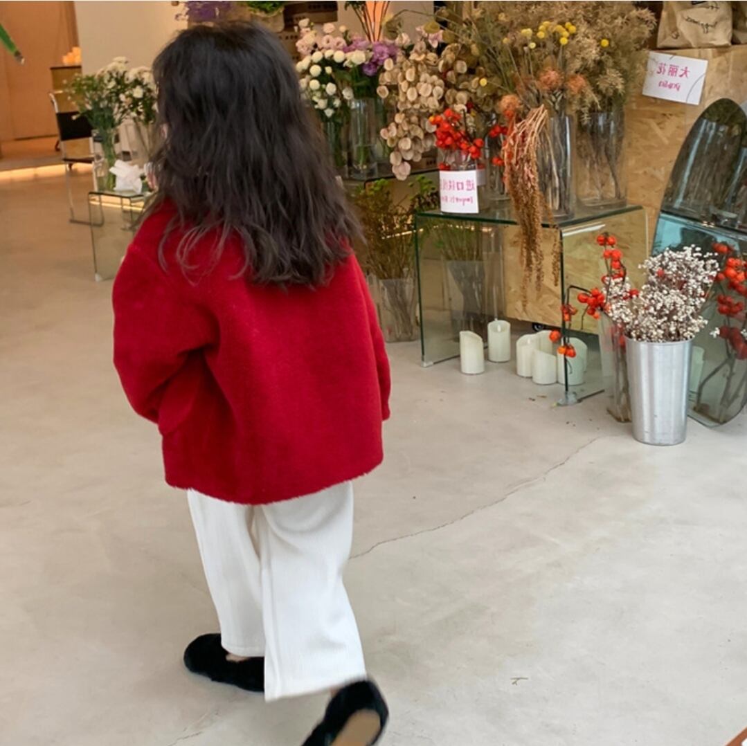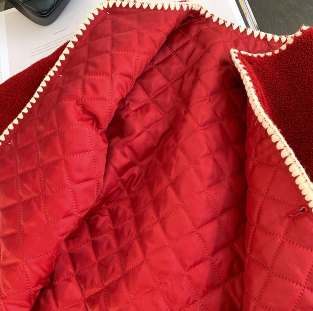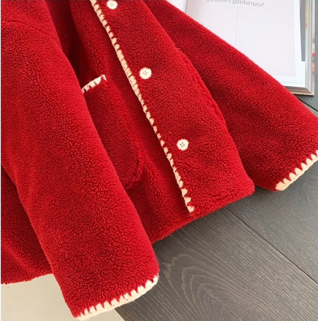 フリース加工で暖かく差し色として使えるレッドカラーのコートです。