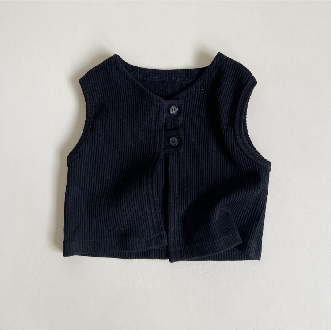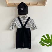 サロペット、ストライプロンT、ベストの3点セット!