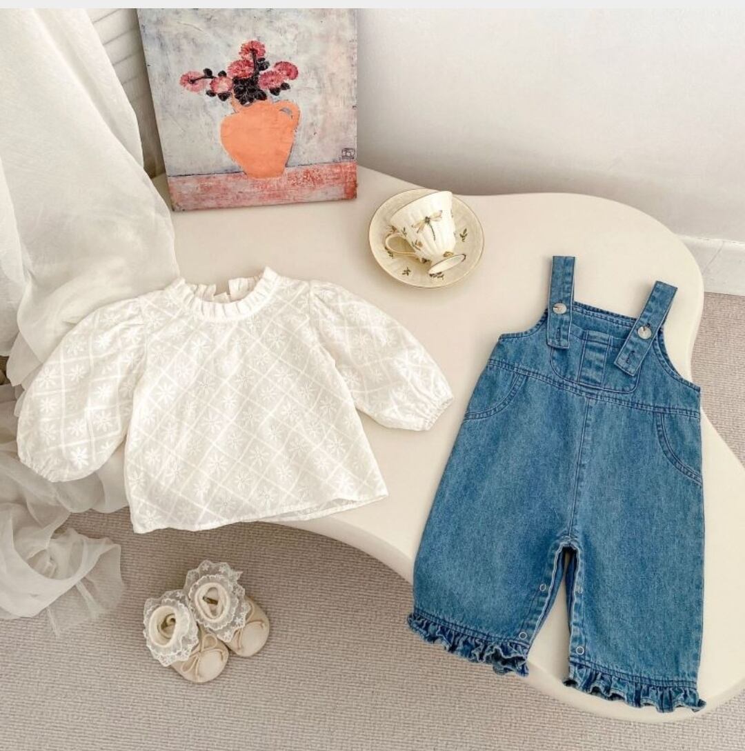 サロペットのシルエットがやわらかく、レースブラウスとの組み合わせが絶妙で、まざまなシーンで活躍します。軽やかな素材感と心地よい着心地が特徴で、デイリーコーデやお出かけにも最適です!