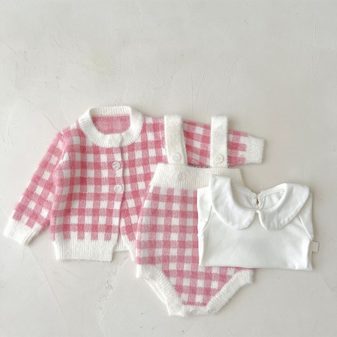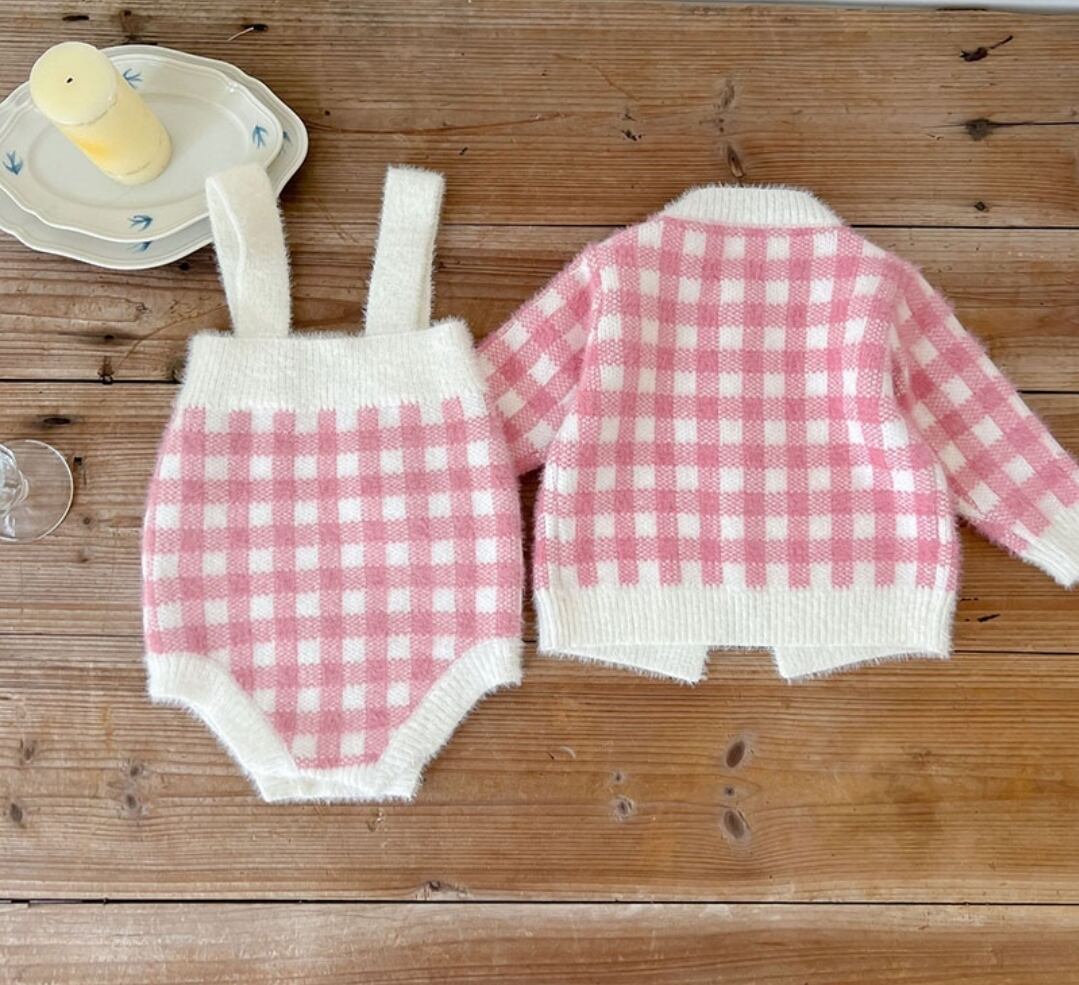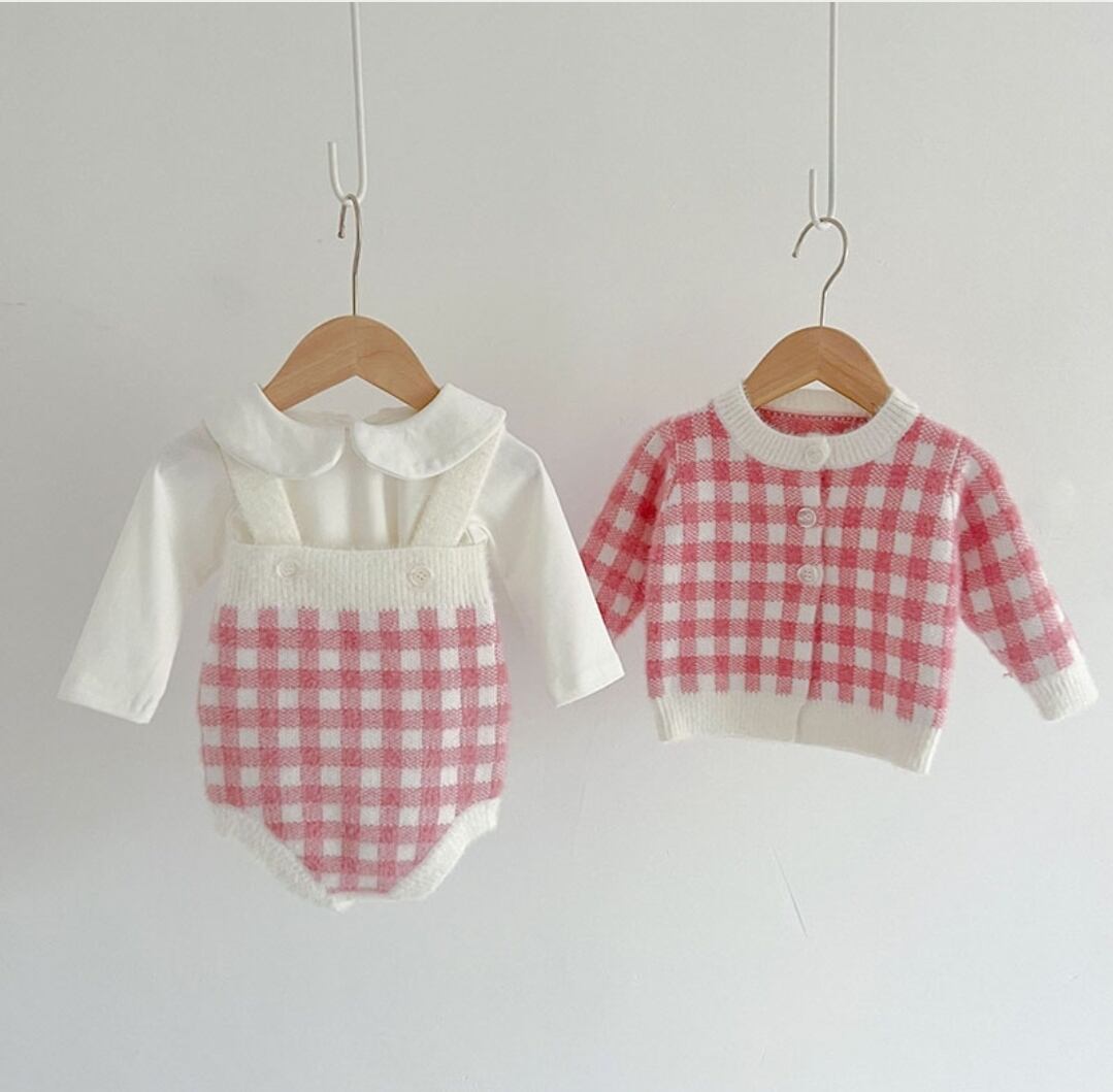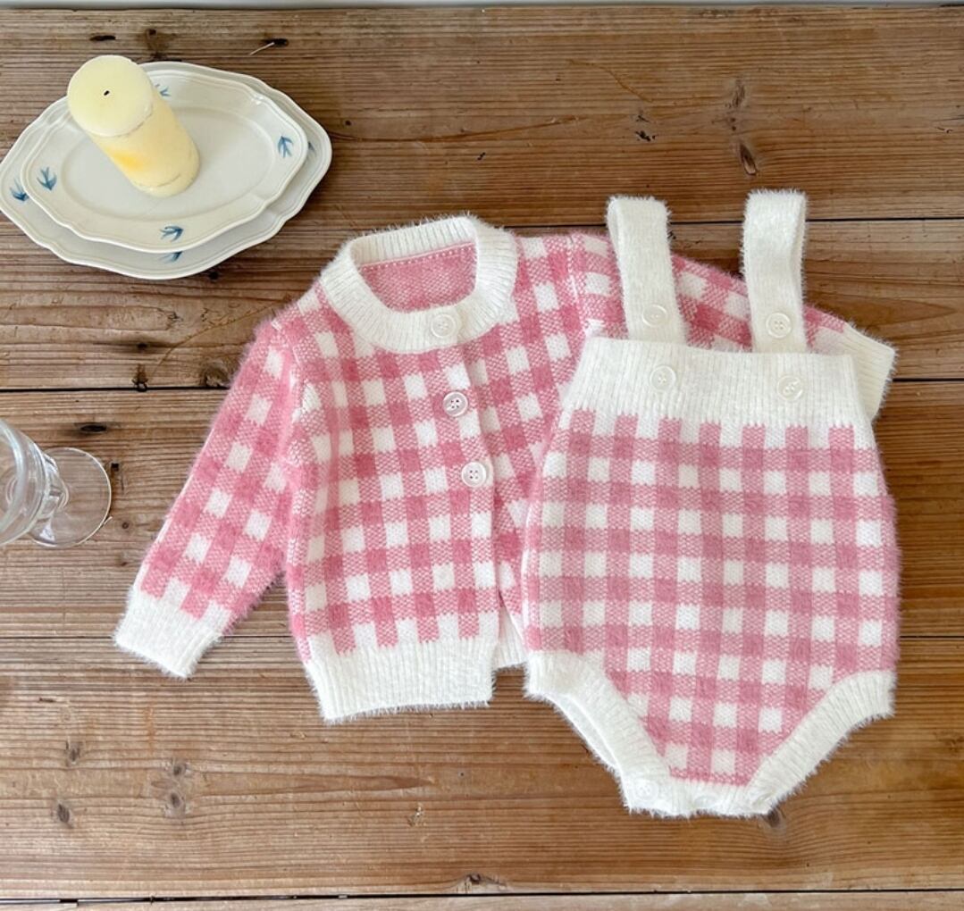 チェック柄ニット3点セットアップ