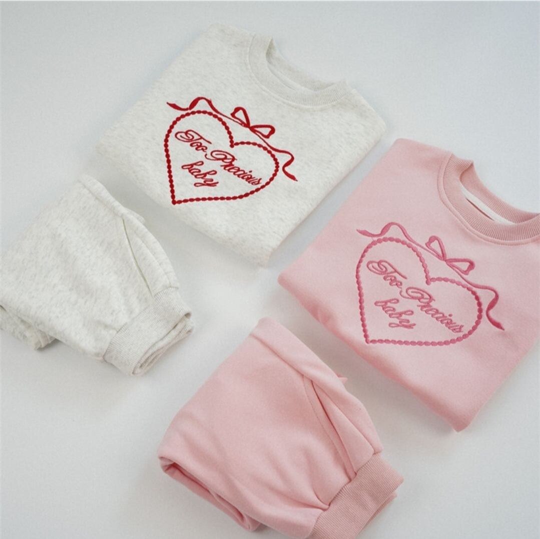 可愛いリボンデザインが特徴のスウェットセットです。カジュアルな日常使いやお出かけにもぴったりで、快適さとおしゃれを両立させた一着です!