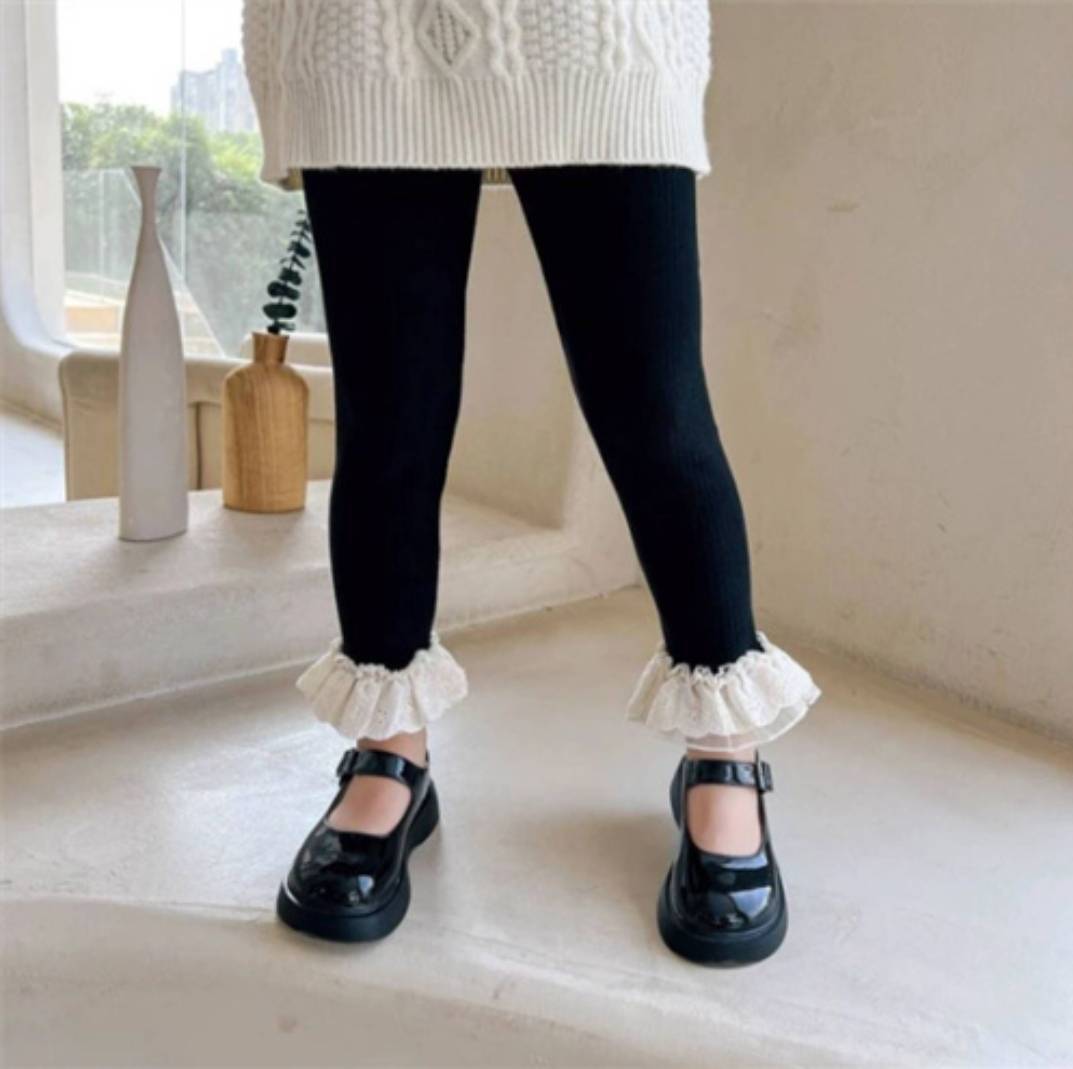 レースリブレギンスは、上品なレースとリブ編みのデザインが特徴的で、カジュアルな日常使いや特別なお出かけにぴったりのアイテムです!