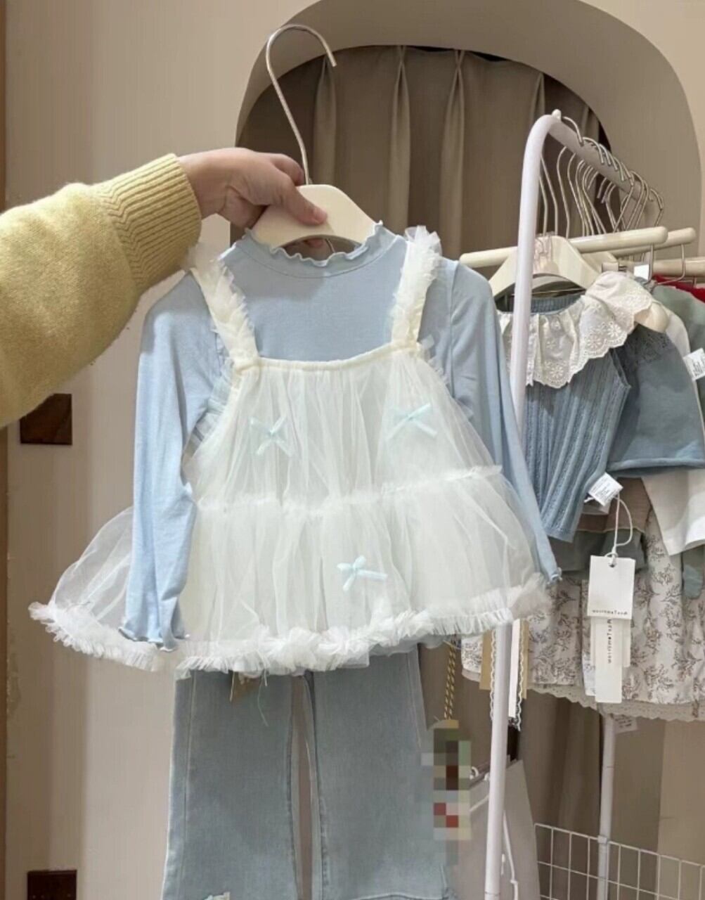 リボンデザインが愛らしく、シフォン素材の柔らかさが魅力のベスト&Tシャツセットです!カジュアルからお出かけまで幅広いシーンで活躍するアイテムです。