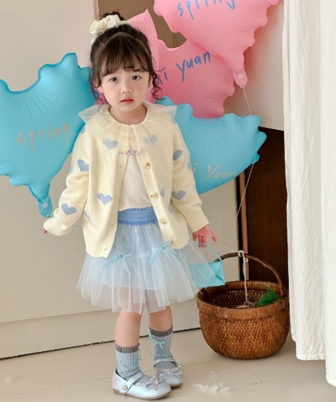 ブルーのハート柄デザインがキュートなニットカーディガンは、デイリーコーディネートから特別な日まで幅広く活躍するアイテムです!